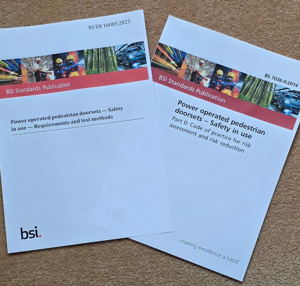 • BS7036-0 is a British Standard code of practice (2014) focused on risk assessment and reduction for powered pedestrian doors (like automatic sliding or revolving doors), ensuring safety by guiding specifiers, installers, and owners to identify hazards and implement solutions, often in conjunction with European standards BS EN 16005 emphasizing features like “non-contact preferred routes” and safety devices to protect users from injury.