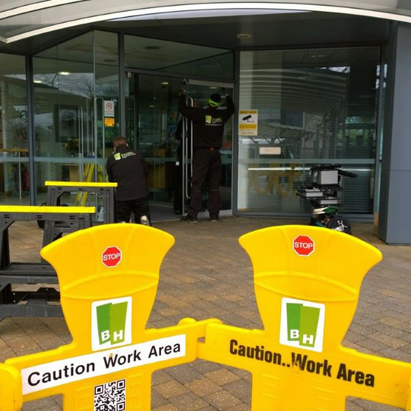 Glass Door Repair – Milton Park in Oxfordshire Repair to a commercial entrance with glass doors for an office building in Milton Park, Oxfordshire